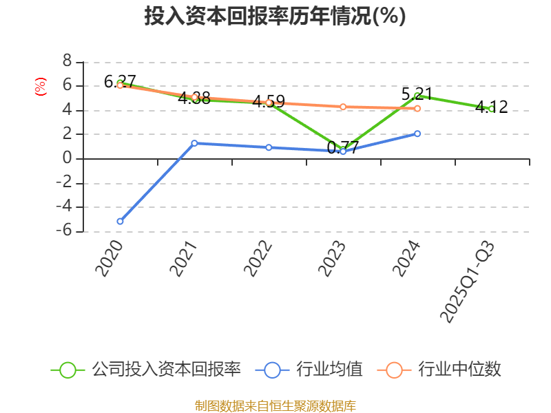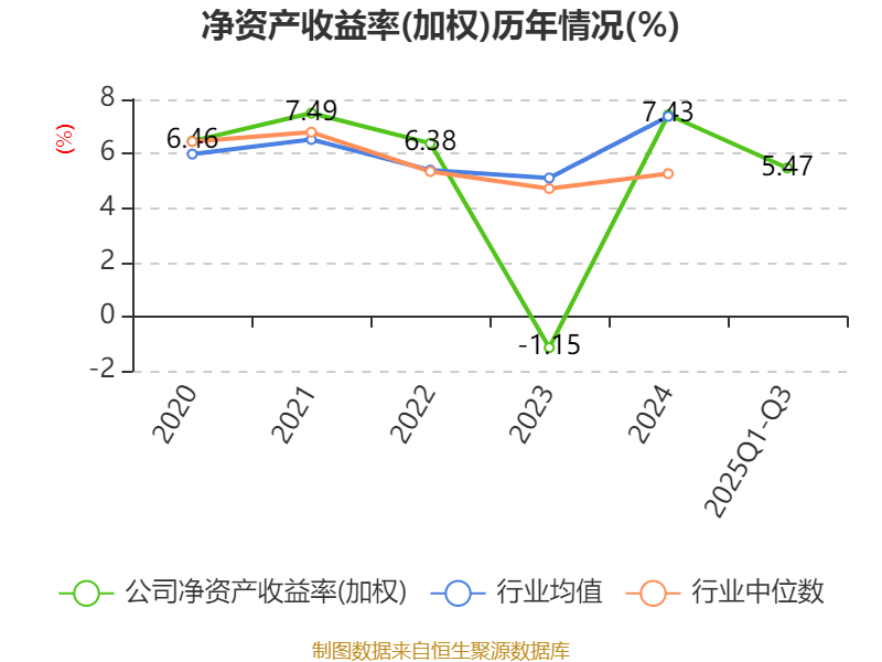 盈利能力方面, 2025年前三季度公司加权平均净资产收益率为5.47%,同比下降0.93个百分点。公司2025年前三季度投入资本回报率为4.12%,较上年同期下降0.27个百分点。