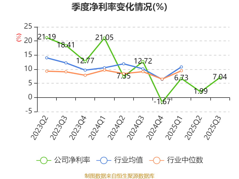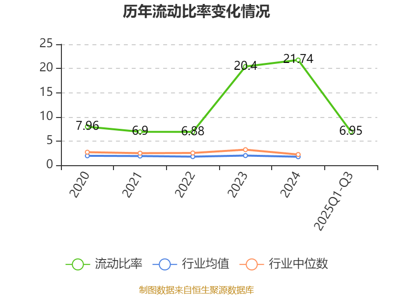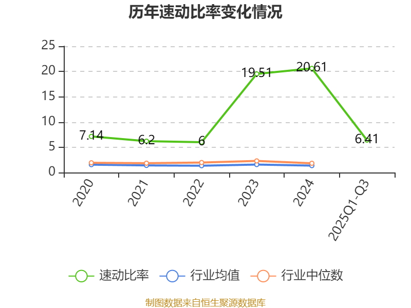 2025年前三季度,公司流动比率为6.95,速动比率为6.41。