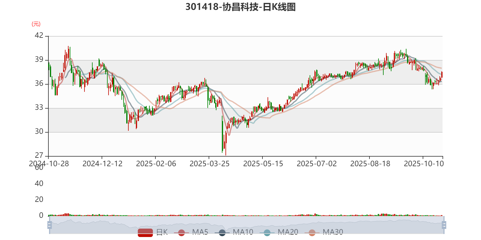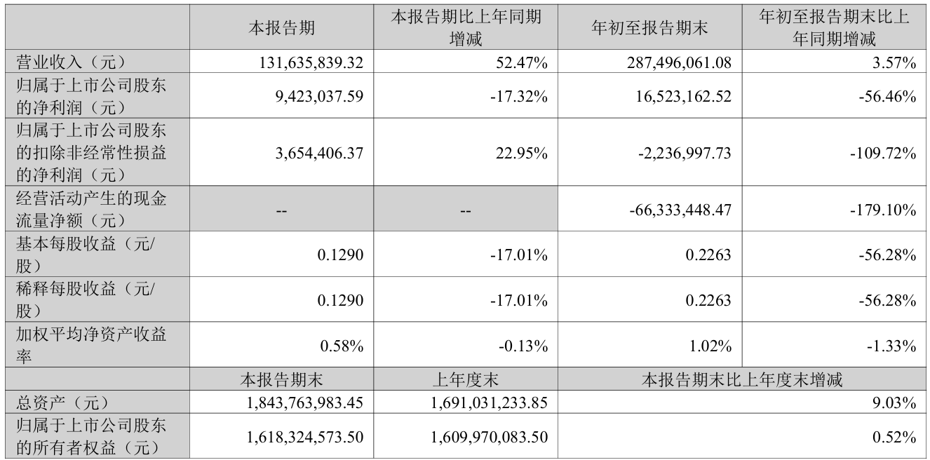 中证智能财讯协昌科技(301418)10月28日披露2025年第三季度报告。前三季度公司实现营业总收入2.87亿元,同比增长3.57%;归母净利润1652.32万元,同比下降56.46%;扣非净利润亏损223.7万元,上年同期盈利2301.96万元;经营活动产生的现金流量净额为-6633.34万元,上年同期为8385.96万元;报告期内,协昌科技基本每股收益为0.2263元,加权平均净资产收益率为1.02%。