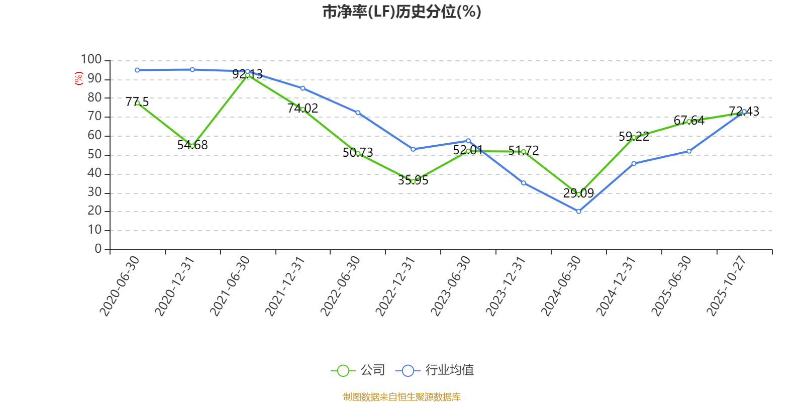 市盈率、市净率为负时,不显示当期分位数,会导致折线图中断。
