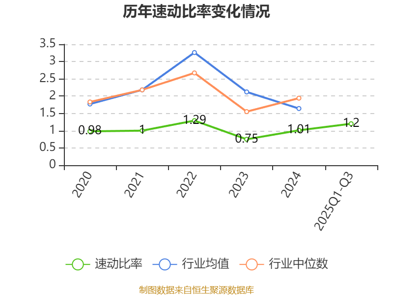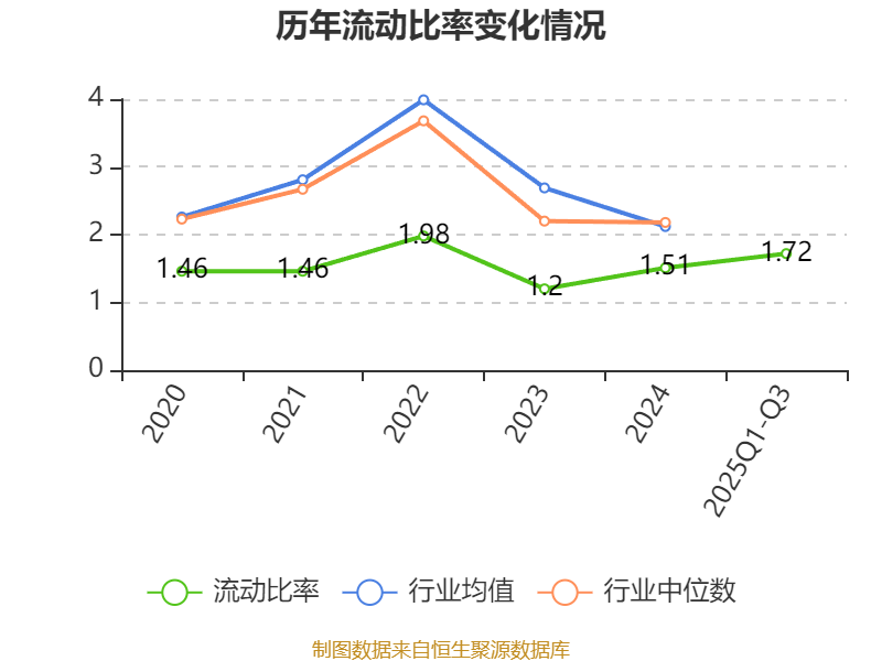 2025年前三季度,公司流动比率为1.72,速动比率为1.2。
