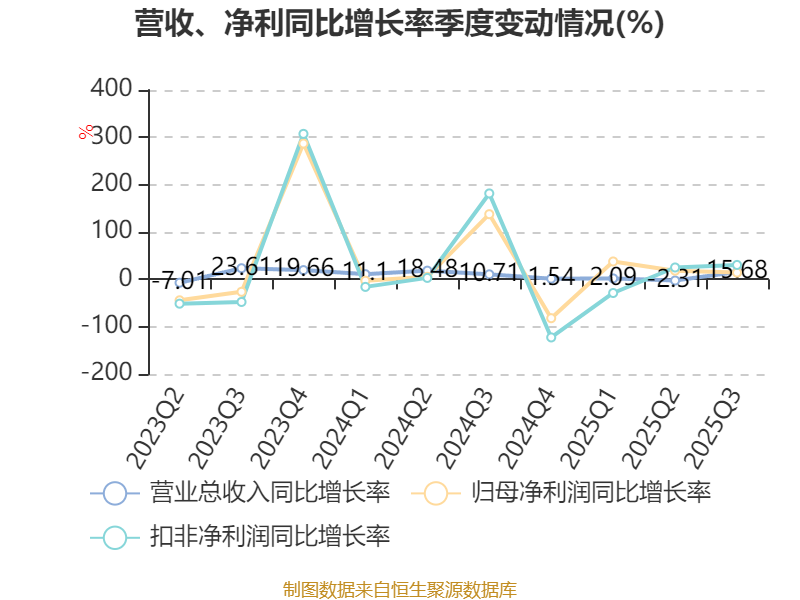 负债重大变化方面,截至2025年三季度末,公司应付票据及应付账款较上年末增加48.29%,占公司总资产比重上升3.69个百分点;一年内到期的非流动负债较上年末减少71.53%,占公司总资产比重下降3.32个百分点;短期借款较上年末增加18.65%,占公司总资产比重上升1.73个百分点;长期借款较上年末减少31.26%,占公司总资产比重下降1.26个百分点。
