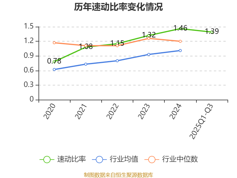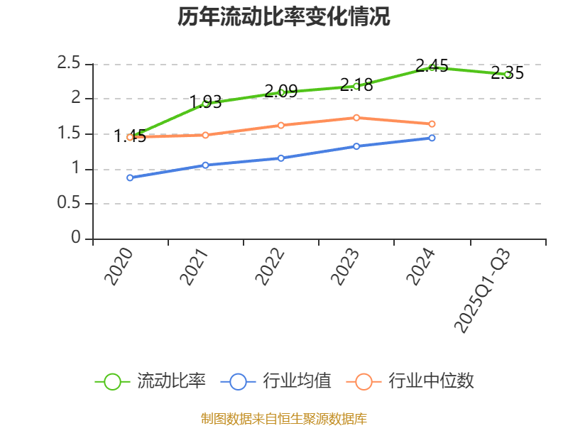 2025年前三季度,公司流动比率为2.35,速动比率为1.39。