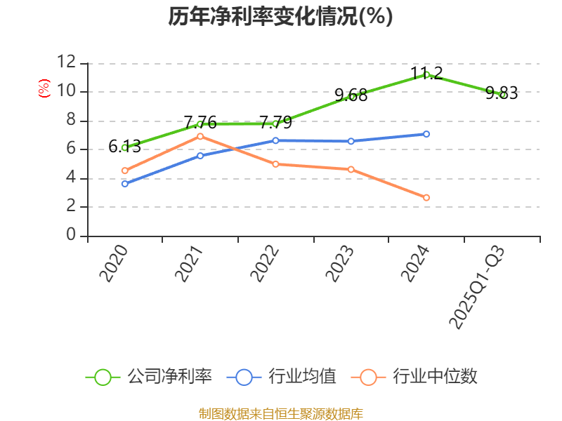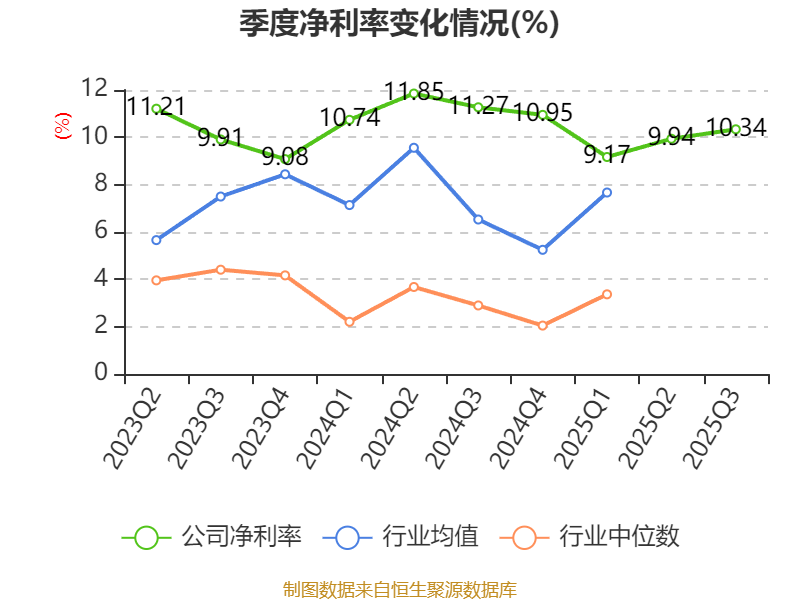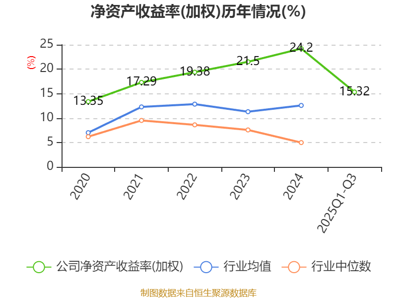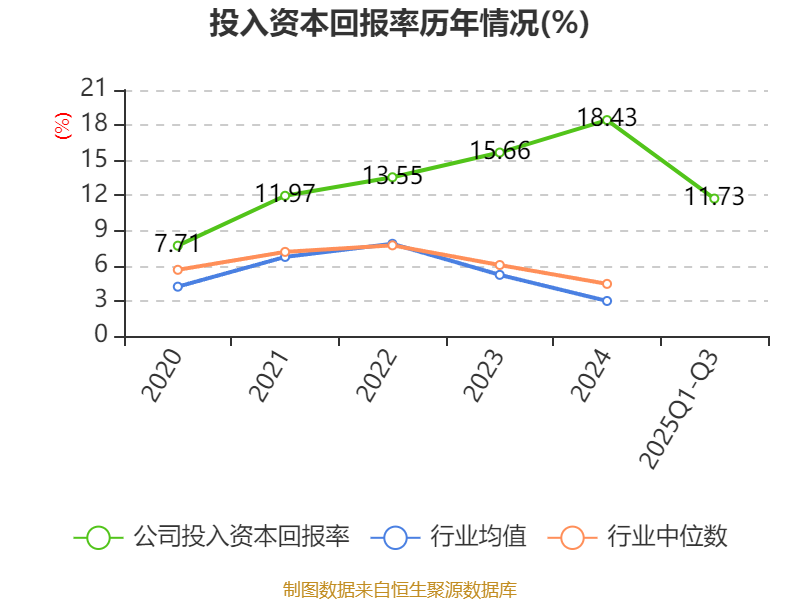 盈利能力方面, 2025年前三季度公司加权平均净资产收益率为15.32%,同比下降2.5个百分点。公司2025年前三季度投入资本回报率为11.73%,较上年同期下降1.85个百分点。