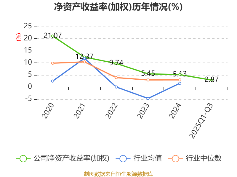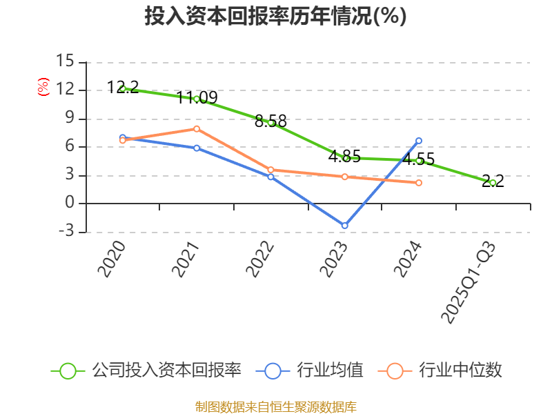盈利能力方面, 2025年前三季度公司加权平均净资产收益率为2.87%,同比下降0.99个百分点。公司2025年前三季度投入资本回报率为2.2%,较上年同期下降1.08个百分点。