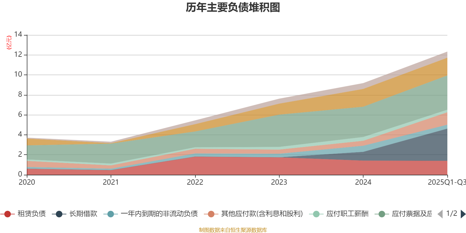 负债重大变化方面,截至2025年三季度末,公司长期借款较上年末增加269.28%,占公司总资产比重上升6.95个百分点;其他应付款(含利息和股利)较上年末增加150.81%,占公司总资产比重上升2.14个百分点;一年内到期的非流动负债较上年末减少36.81%,占公司总资产比重下降0.91个百分点;短期借款较上年末减少0.65%,占公司总资产比重下降0.66个百分点。