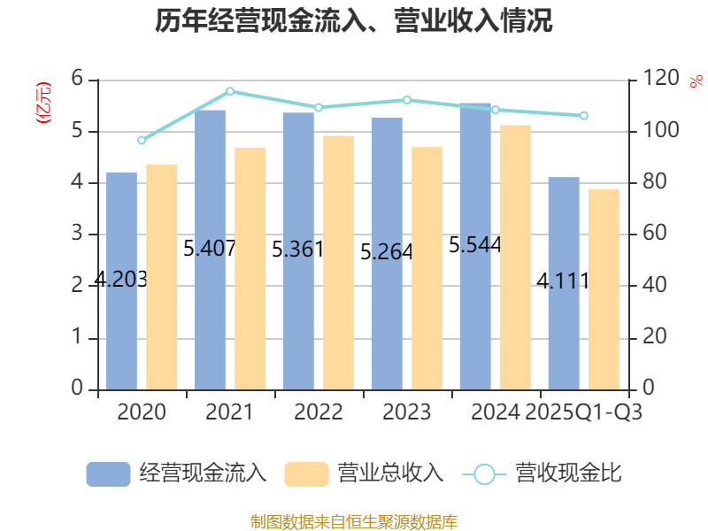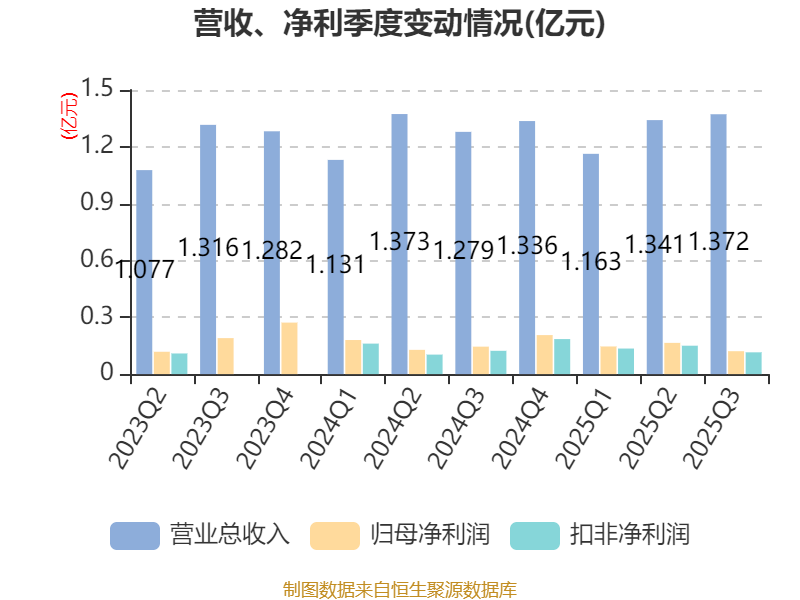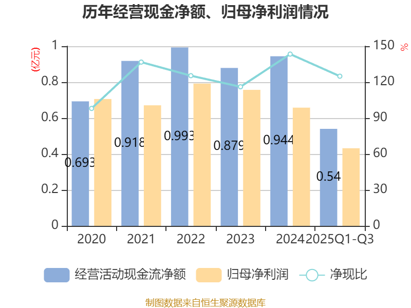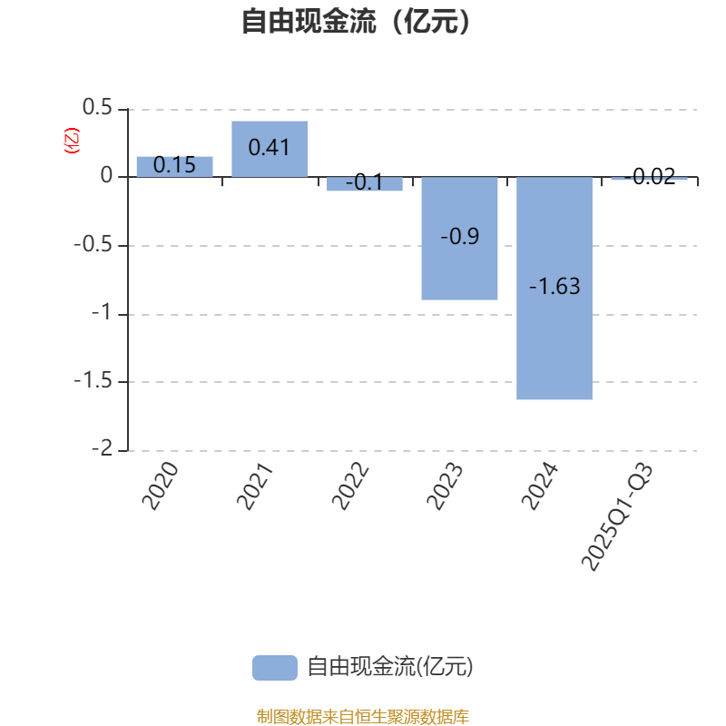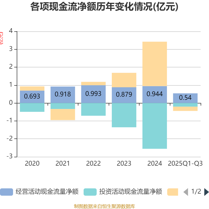 2025年前三季度,公司经营活动现金流净额为5396.89万元,同比增长40.65%;筹资活动现金流净额-2370.49万元,同比减少2.93亿元;投资活动现金流净额-2051.96万元,上年同期为-9491.67万元。