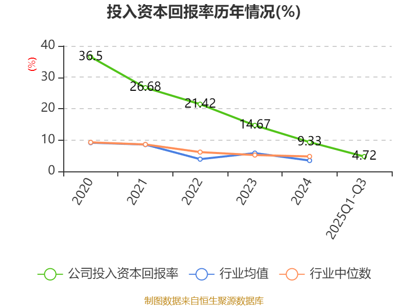 盈利能力方面, 2025年前三季度公司加权平均净资产收益率为5.26%,同比下降3.25个百分点。公司2025年前三季度投入资本回报率为4.72%,较上年同期下降1.72个百分点。
