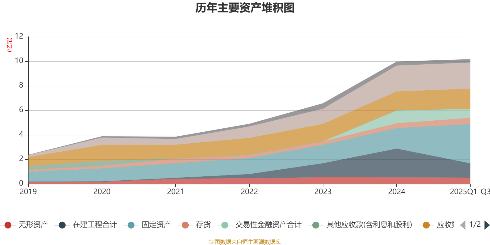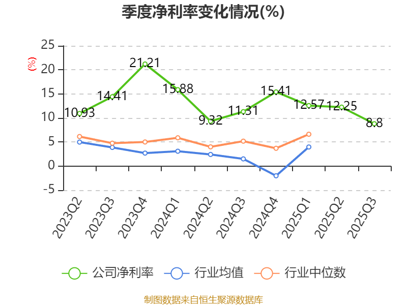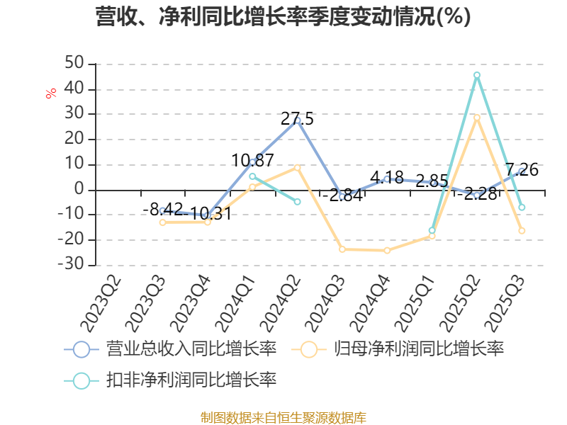 资产重大变化方面,截至2025年三季度末,公司固定资产较上年末增加91.69%,占公司总资产比重上升14.8个百分点;在建工程合计较上年末减少50.43%,占公司总资产比重下降12.08个百分点;交易性金融资产合计较上年末减少29.67%,占公司总资产比重下降3.22个百分点;存货较上年末增加28.1%,占公司总资产比重上升1.02个百分点。