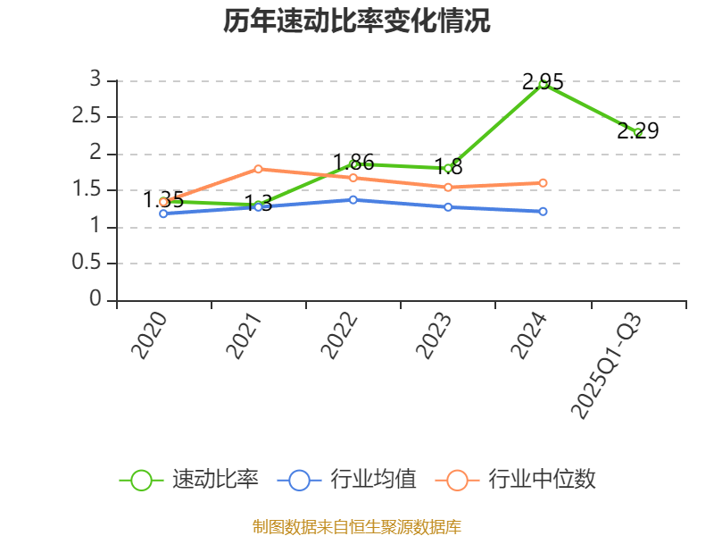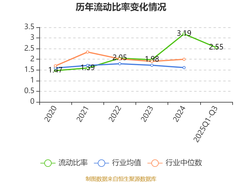 2025年前三季度,公司流动比率为2.55,速动比率为2.29。