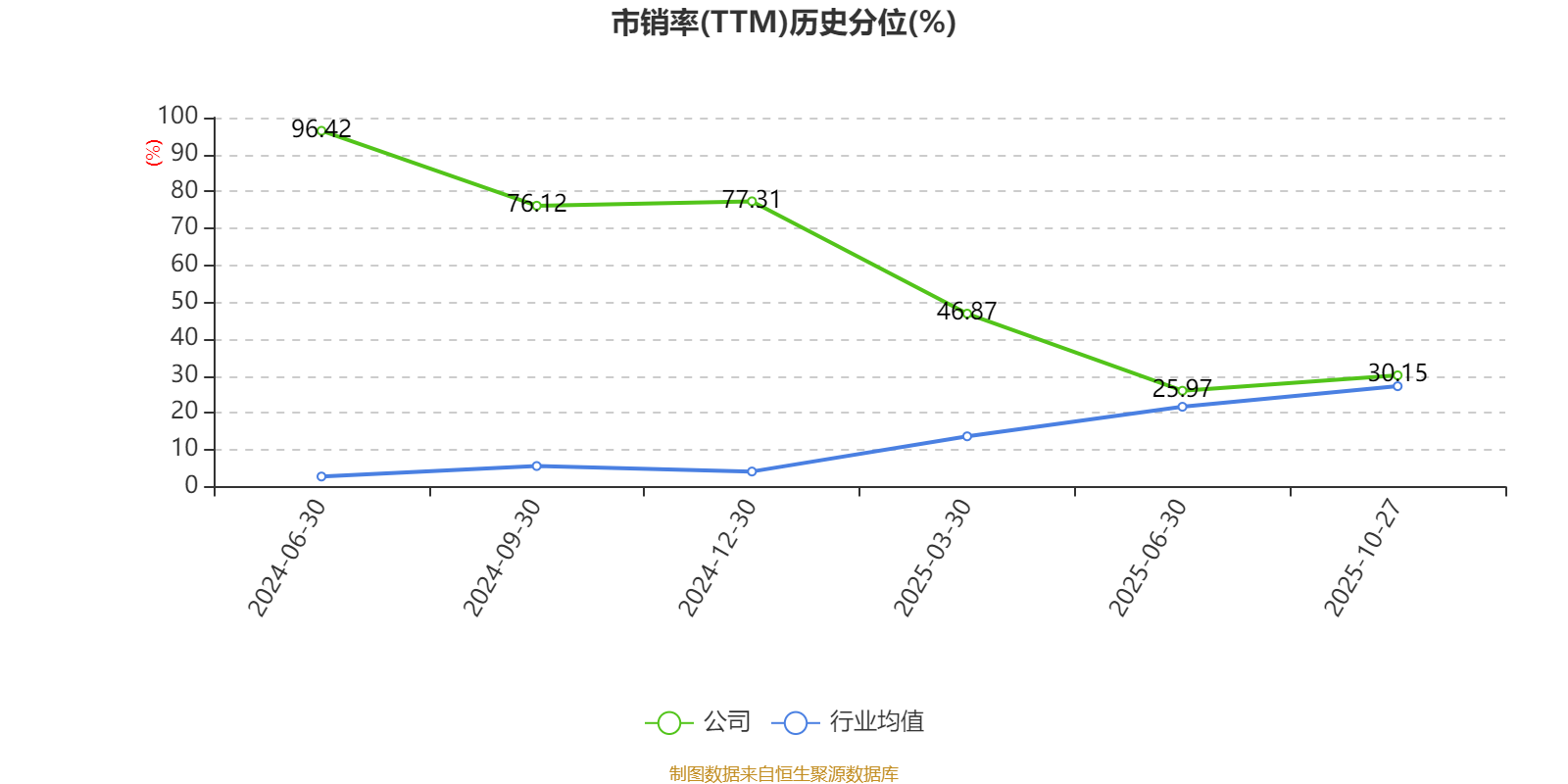 市盈率、市净率为负时,不显示当期分位数,会导致折线图中断。