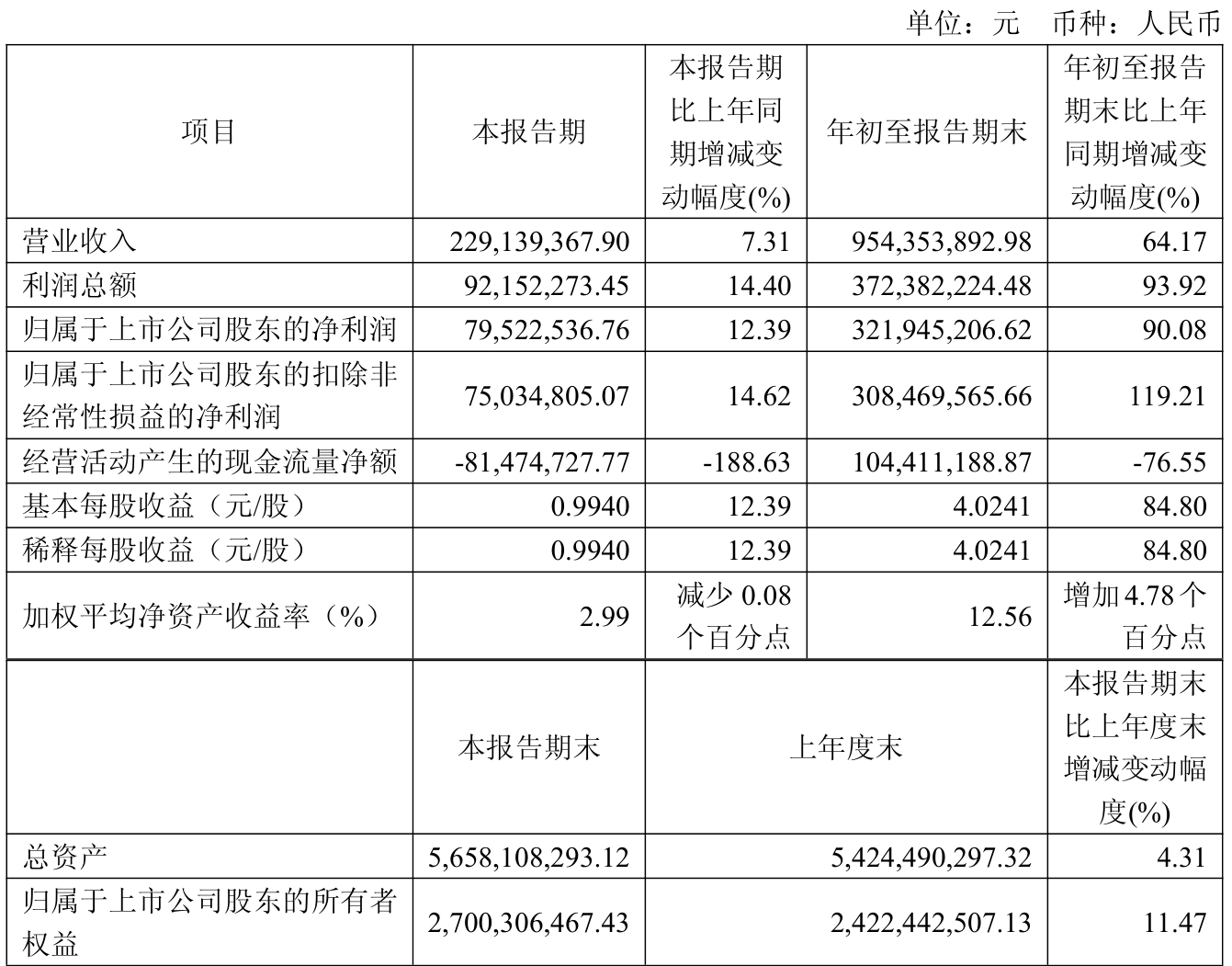 中证智能财讯博隆技术(603325)10月28日披露2025年第三季度报告。前三季度公司实现营业总收入9.54亿元,同比增长64.17%;归母净利润3.22亿元,同比增长90.08%;扣非净利润3.08亿元,同比增长119.21%;经营活动产生的现金流量净额为1.04亿元,同比下降76.55%;报告期内,博隆技术基本每股收益为4.0241元,加权平均净资产收益率为12.56%。公司2025年前三季度分配预案为:拟向全体股东每10股派现6元(含税)。