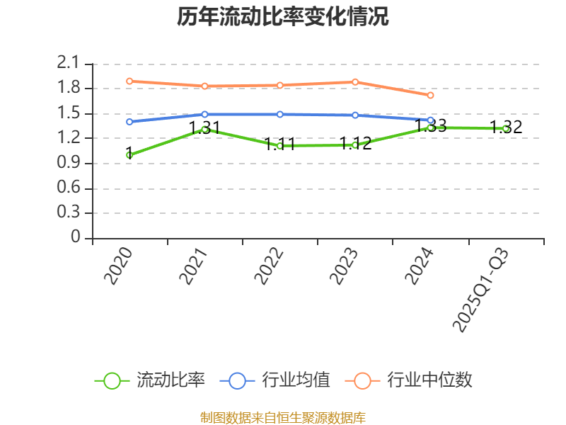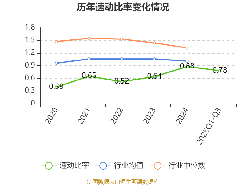 2025年前三季度,公司流动比率为1.32,速动比率为0.78。