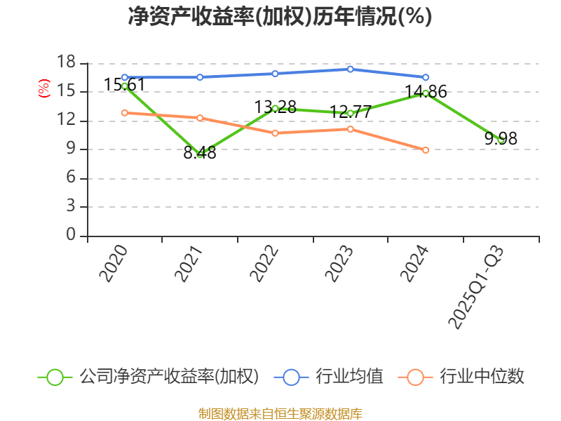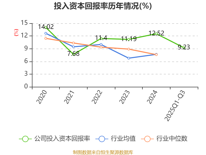 盈利能力方面, 2025年前三季度公司加权平均净资产收益率为9.98%,同比上升0.46个百分点。公司2025年前三季度投入资本回报率为9.23%,较上年同期上升0.96个百分点。