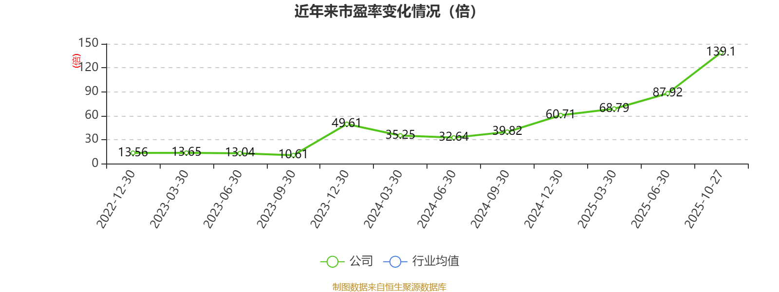以10月27日收盘价计算,华密新材目前市盈率(TTM)约为139.1倍,市净率(LF)约9.67倍,市销率(TTM)约10.35倍。