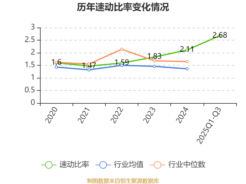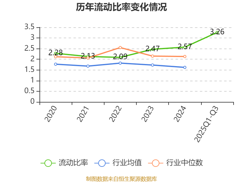2025年前三季度,公司流动比率为3.26,速动比率为2.68。