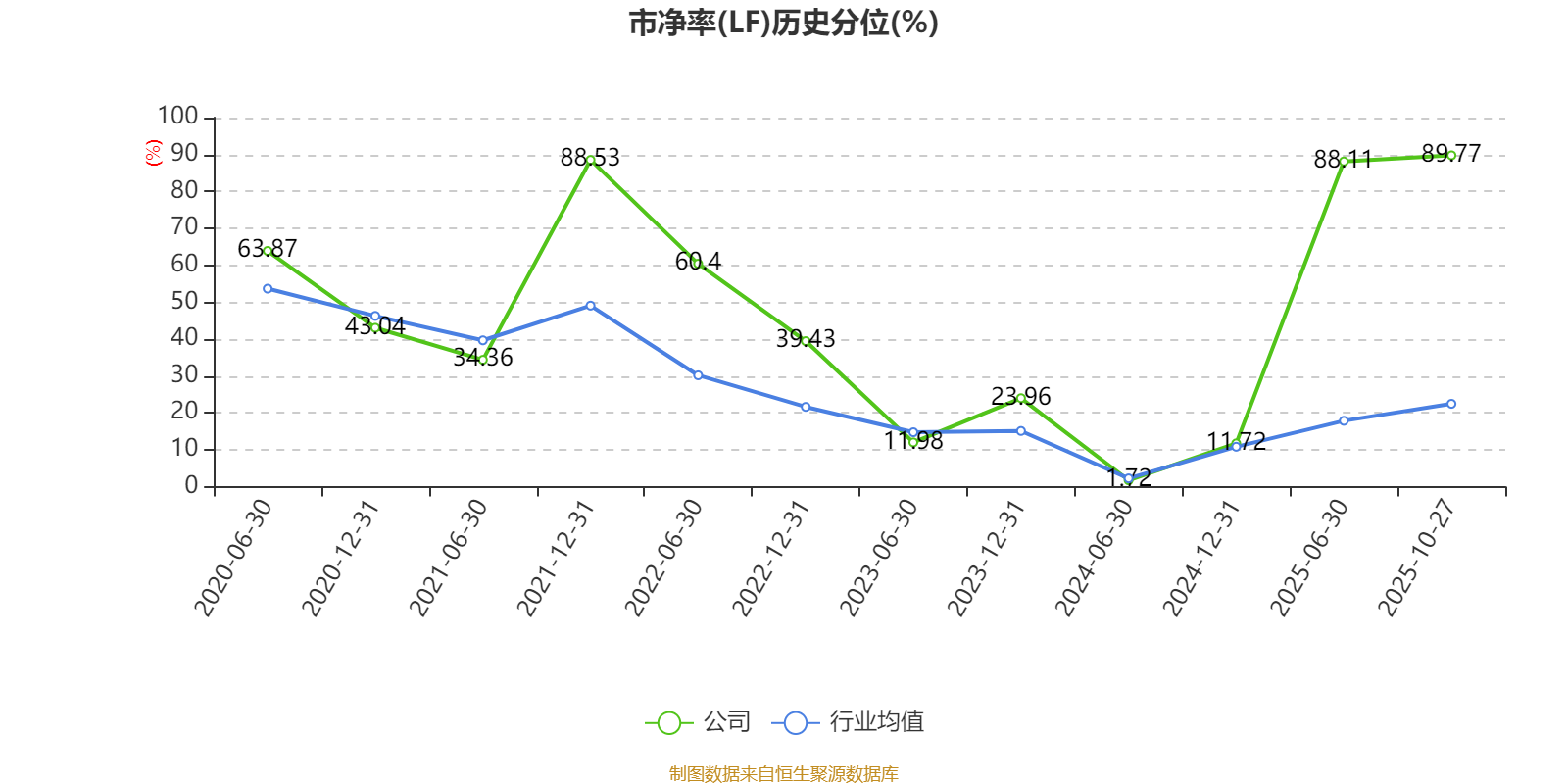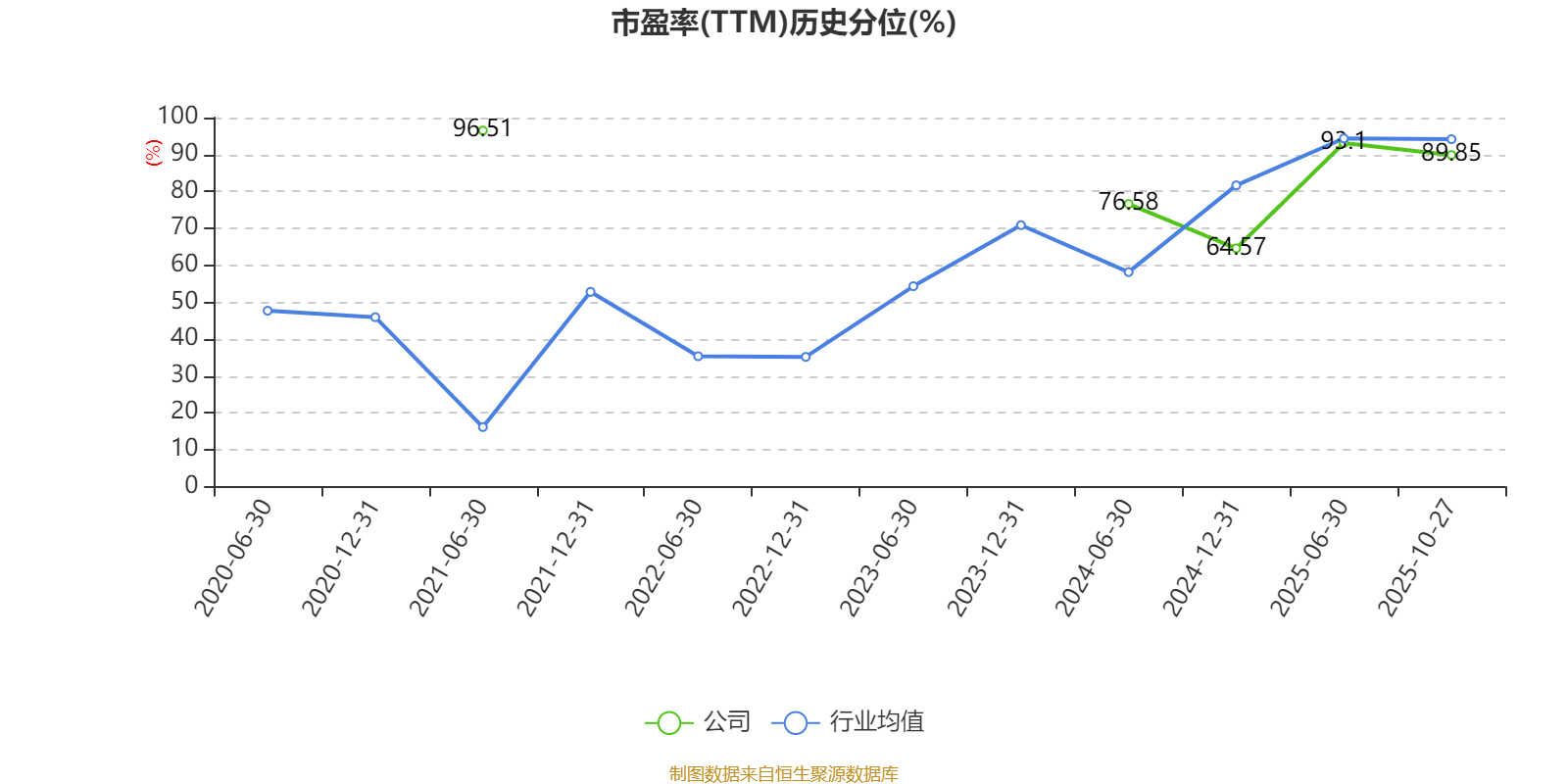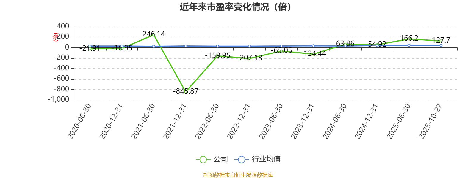 市盈率、市净率为负时,不显示当期分位数,会导致折线图中断。