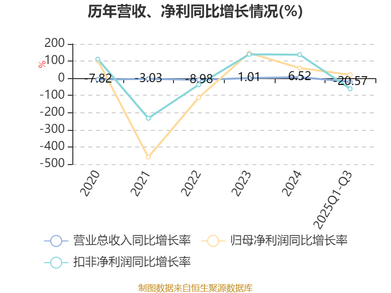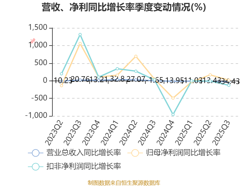 负债重大变化方面,截至2025年三季度末,公司应付票据及应付账款较上年末减少30.02%,占公司总资产比重下降4.42个百分点;长期借款较上年末增加270.37%,占公司总资产比重上升3.11个百分点;一年内到期的非流动负债较上年末减少45.44%,占公司总资产比重下降1个百分点;应付职工薪酬较上年末减少50.18%,占公司总资产比重下降0.56个百分点。