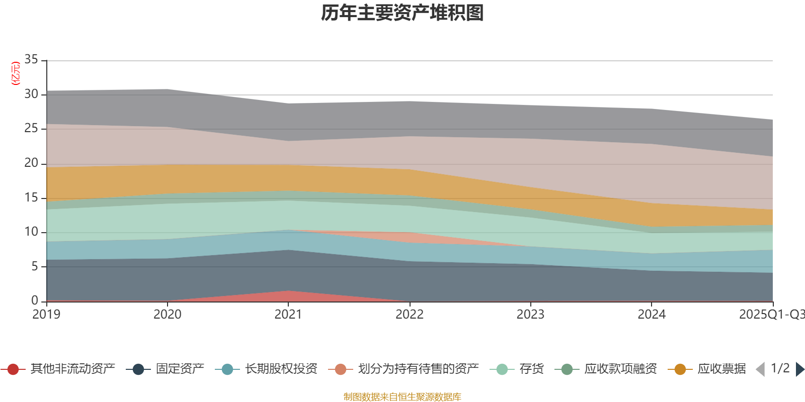 资产重大变化方面,截至2025年三季度末,公司应收票据及应收账款较上年末减少34.71%,占公司总资产比重下降3.78个百分点;长期股权投资较上年末增加32.7%,占公司总资产比重上升3.63个百分点;货币资金较上年末减少10.39%,占公司总资产比重下降1.55个百分点;交易性金融资产合计较上年末增加78.09%,占公司总资产比重上升1.34个百分点。