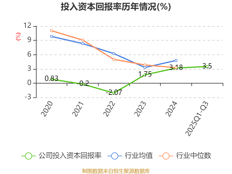 盈利能力方面, 2025年前三季度公司加权平均净资产收益率为3.58%,同比上升0.64个百分点。公司2025年前三季度投入资本回报率为3.5%,较上年同期上升0.13个百分点。