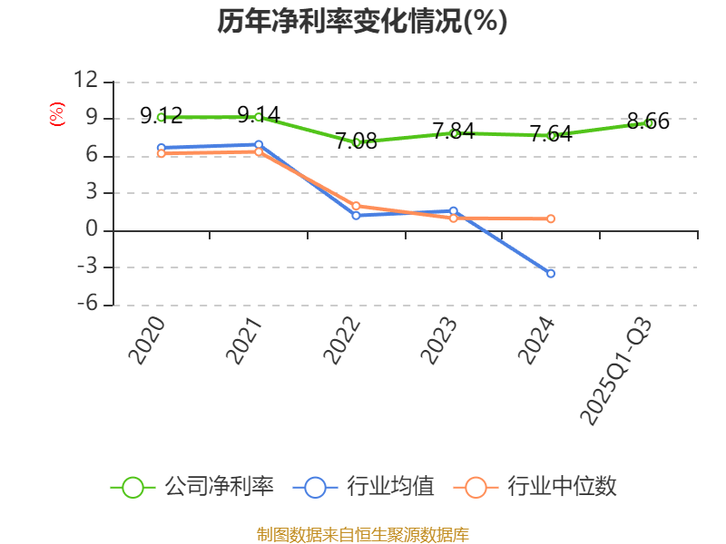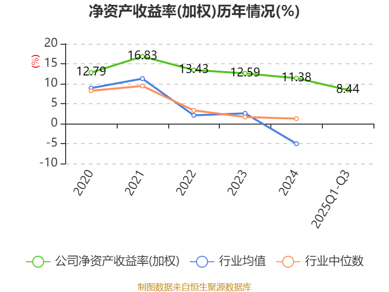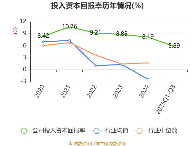 盈利能力方面, 2025年前三季度公司加权平均净资产收益率为8.44%,同比下降0.65个百分点。公司2025年前三季度投入资本回报率为5.89%,较上年同期下降0.58个百分点。