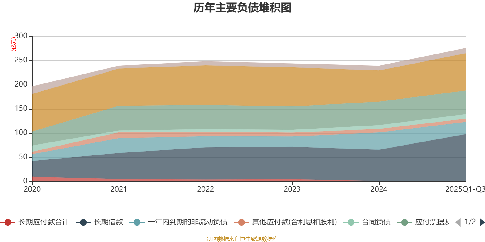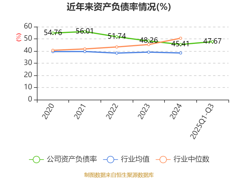 负债重大变化方面,截至2025年三季度末,公司长期借款较上年末增加52.3%,占公司总资产比重上升4.71个百分点;一年内到期的非流动负债较上年末减少29.84%,占公司总资产比重下降2.45个百分点;短期借款较上年末增加20.17%,占公司总资产比重上升1.14个百分点;应付票据及应付账款较上年末增加0.24%,占公司总资产比重下降0.81个百分点。