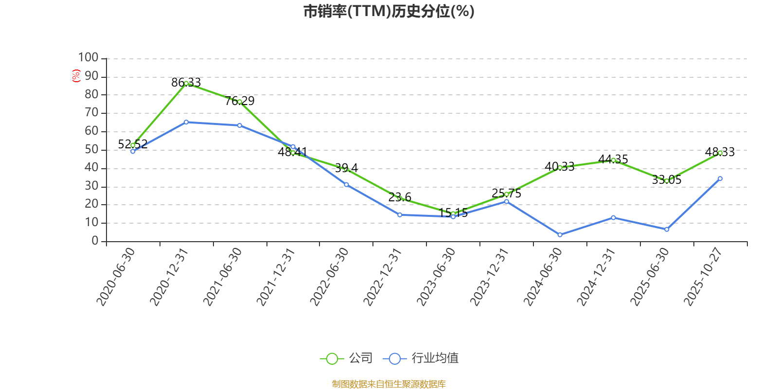 以10月27日收盘价计算,太阳纸业目前市盈率(TTM)约为12.86倍,市净率(LF)约1.34倍,市销率(TTM)约1.04倍。