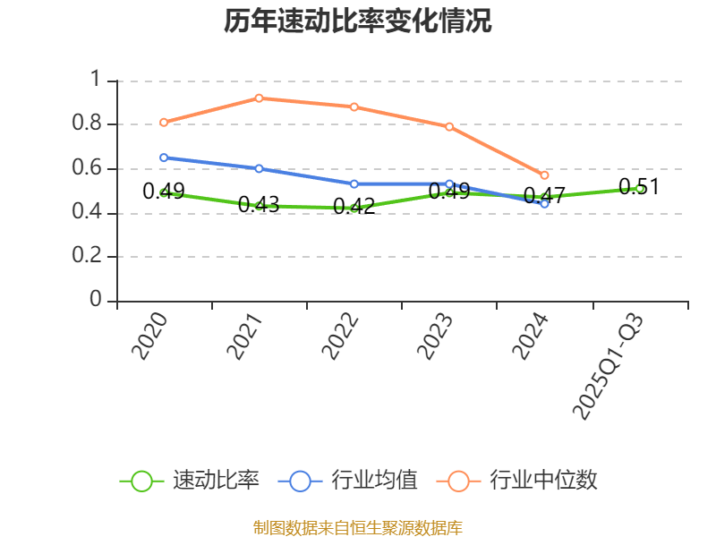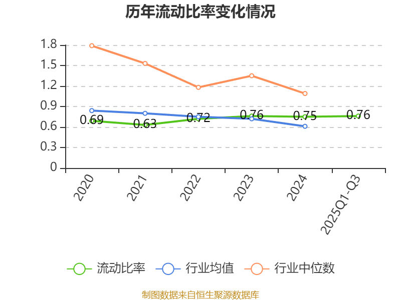 2025年前三季度,公司流动比率为0.76,速动比率为0.51。