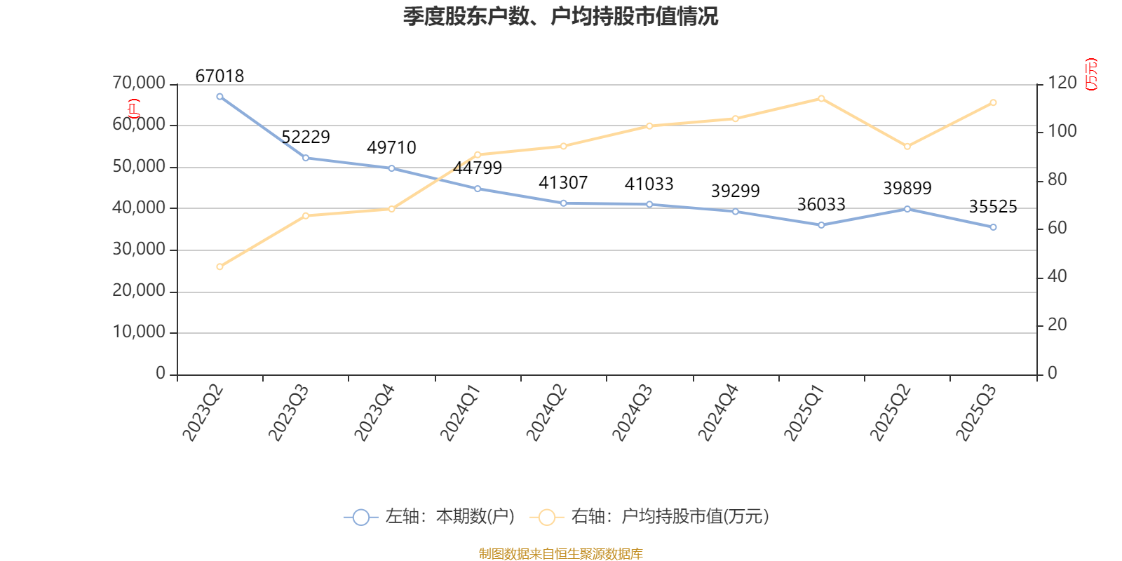 三季报显示,2025年三季度末的公司十大流通股东中,新进股东为中泰兴为价值精选混合型证券投资基金、基本养老保险基金一二零一组合,取代了二季度末的社保基金16042组合、嘉实价值精选股票型证券投资基金。在具体持股比例上,香港中央结算有限公司持股有所上升,全国社保基金一零三组合、中泰星元价值优选灵活配置混合型证券投资基金、全国社保基金一零九组合、中证500交易型开放式指数证券投资基金、泰康人寿保险有限责任公司-投连-多策略优选持股有所下降。
