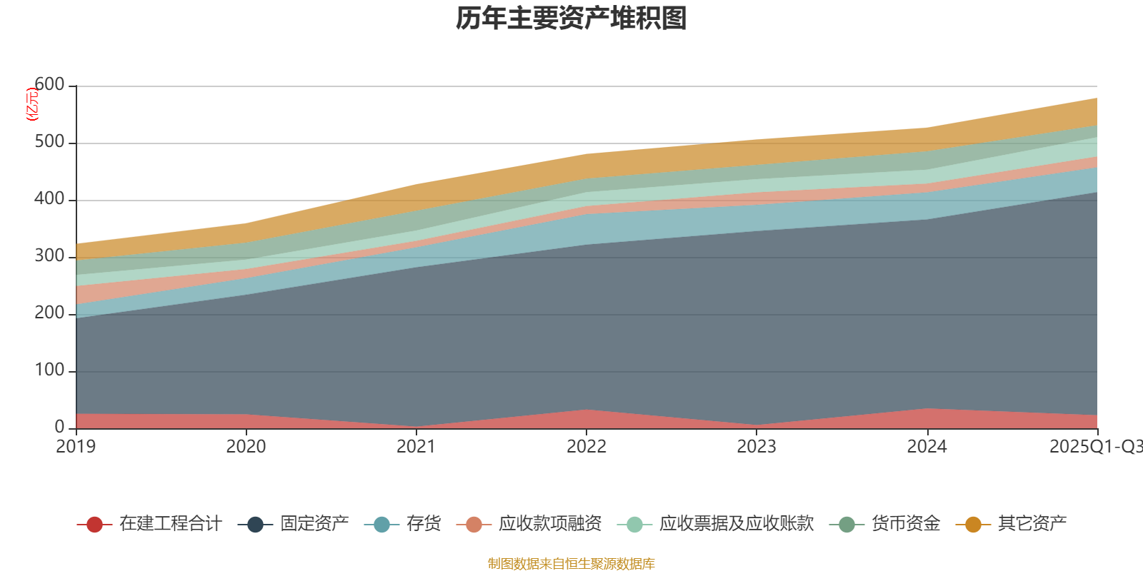 资产重大变化方面,截至2025年三季度末,公司固定资产较上年末增加18%,占公司总资产比重上升4.62个百分点;在建工程合计较上年末减少34.05%,占公司总资产比重下降2.63个百分点;货币资金较上年末减少34.83%,占公司总资产比重下降2.5个百分点;存货较上年末减少8.3%,占公司总资产比重下降1.5个百分点。