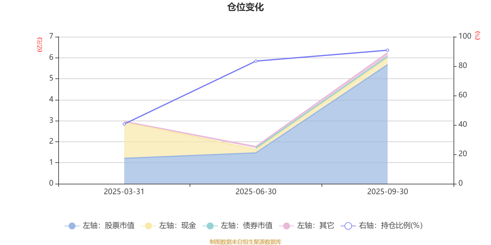 据定期报告数据统计,成立以来平均股票仓位为71.64%,同类平均为83.5%。2025年三季度末基金达到90.85%的最高仓位,2025年一季度末最低,为40.62%。