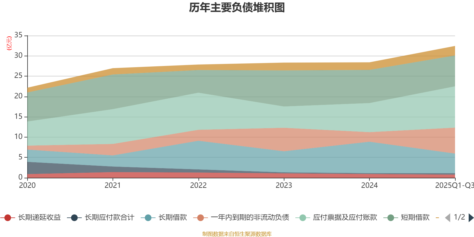 负债重大变化方面,截至2025年三季度末,公司一年内到期的非流动负债较上年末增加170.23%,占公司总资产比重上升6.88个百分点;长期借款较上年末减少37.67%,占公司总资产比重下降6.77个百分点;应付票据及应付账款较上年末增加42.12%,占公司总资产比重上升4.15个百分点;短期借款较上年末减少6.87%,占公司总资产比重下降2.55个百分点。
