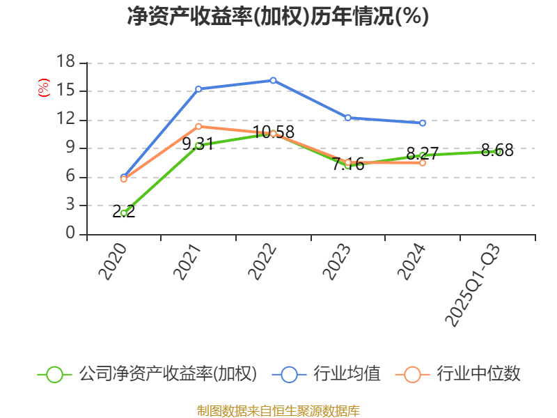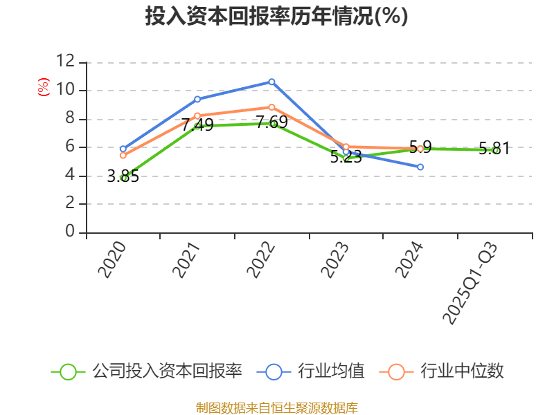 盈利能力方面, 2025年前三季度公司加权平均净资产收益率为8.68%,同比上升1.73个百分点。公司2025年前三季度投入资本回报率为5.81%,较上年同期上升0.92个百分点。