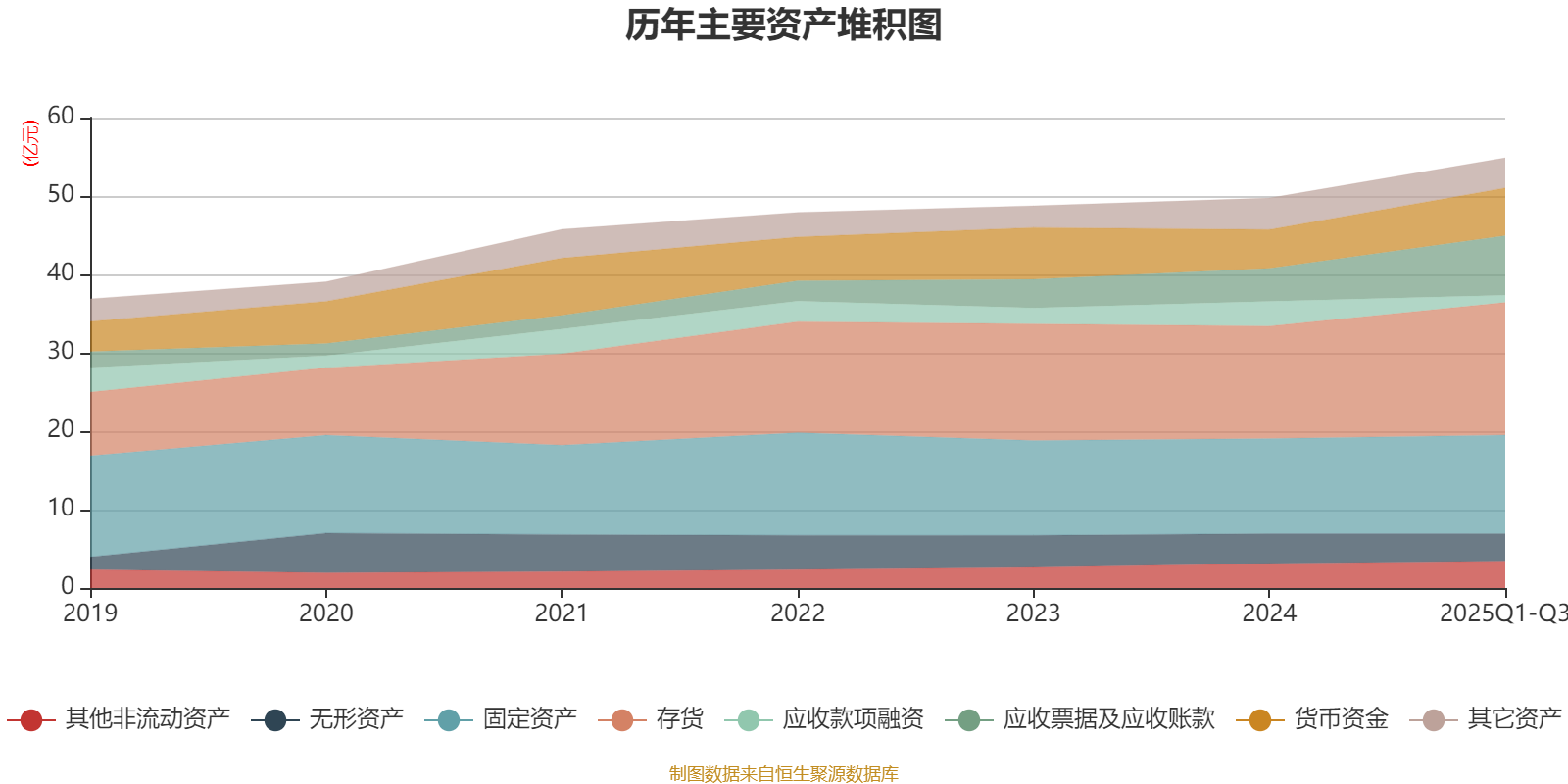 资产重大变化方面,截至2025年三季度末,公司应收票据及应收账款较上年末增加80.49%,占公司总资产比重上升5.39个百分点;应收款项融资较上年末减少71.25%,占公司总资产比重下降4.69个百分点;存货较上年末增加17.88%,占公司总资产比重上升1.98个百分点;固定资产较上年末增加3.8%,占公司总资产比重下降1.44个百分点。