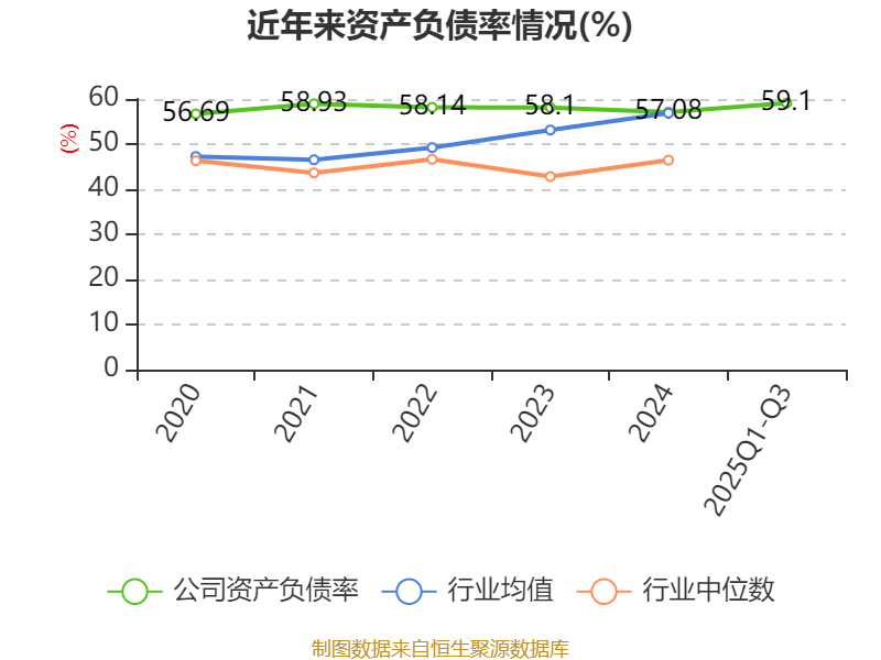 2025年前三季度,公司流动比率为1.24,速动比率为0.59。