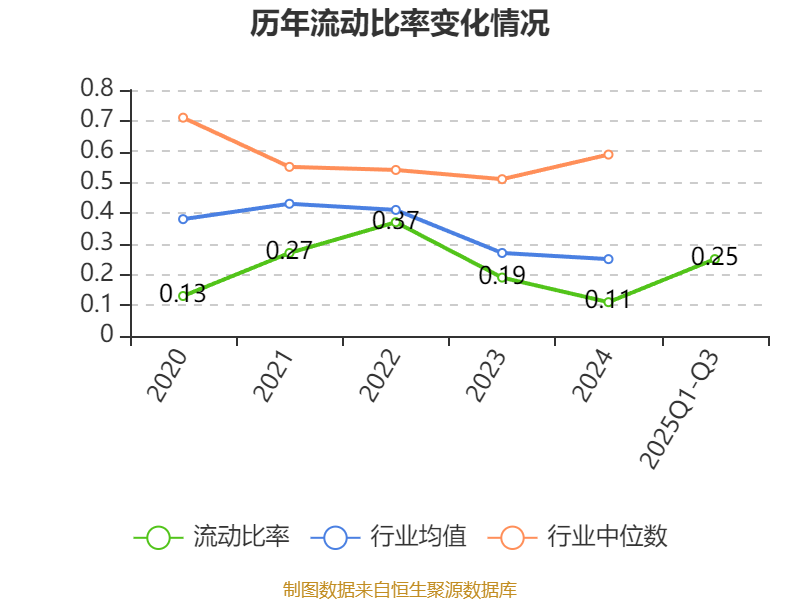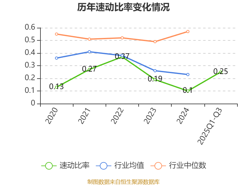 2025年前三季度,公司流动比率为0.25,速动比率为0.25。