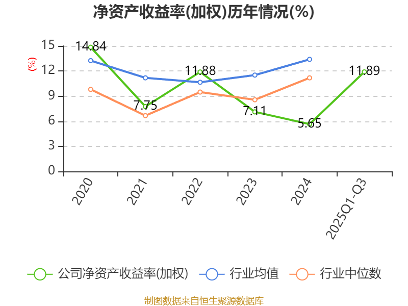 盈利能力方面, 2025年前三季度公司加权平均净资产收益率为11.89%,同比上升5.09个百分点。公司2025年前三季度投入资本回报率为7.14%,较上年同期上升2.87个百分点。
