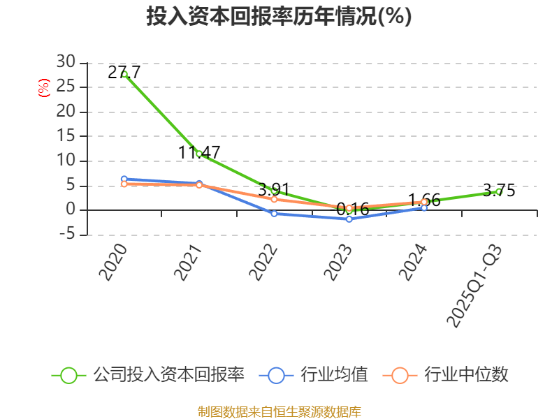 盈利能力方面, 2025年前三季度公司加权平均净资产收益率为4.37%,同比上升1.09个百分点。公司2025年前三季度投入资本回报率为3.75%,较上年同期上升1.21个百分点。