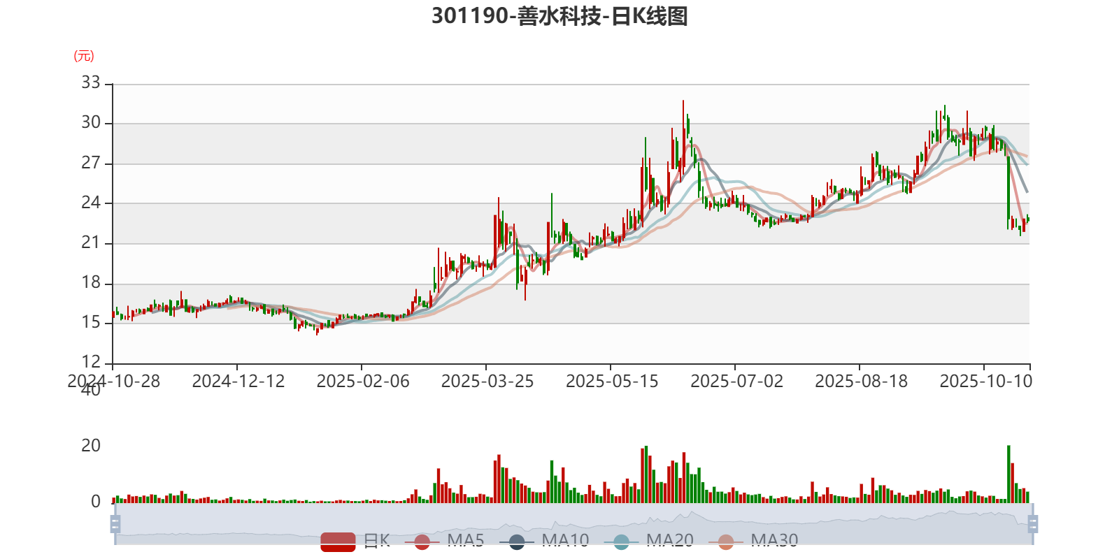 以10月27日收盘价计算,善水科技目前市盈率(TTM)约为69.83倍,市净率(LF)约2.5倍,市销率(TTM)约7.74倍。
