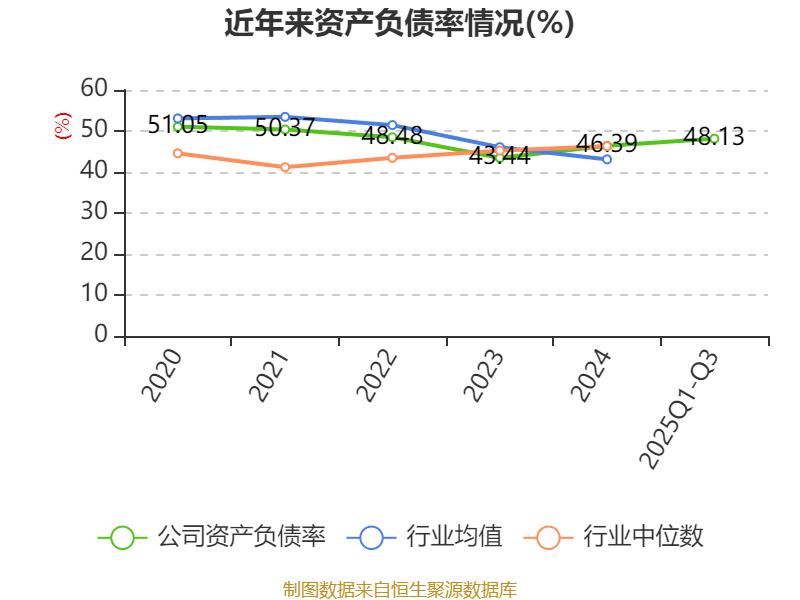 资产重大变化方面,截至2025年三季度末,公司固定资产较上年末减少3.41%,占公司总资产比重下降3.55个百分点;货币资金较上年末减少7.45%,占公司总资产比重下降2.42个百分点;在建工程合计较上年末增加51.59%,占公司总资产比重上升1.93个百分点;使用权资产较上年末增加39764.27%,占公司总资产比重上升1.5个百分点。