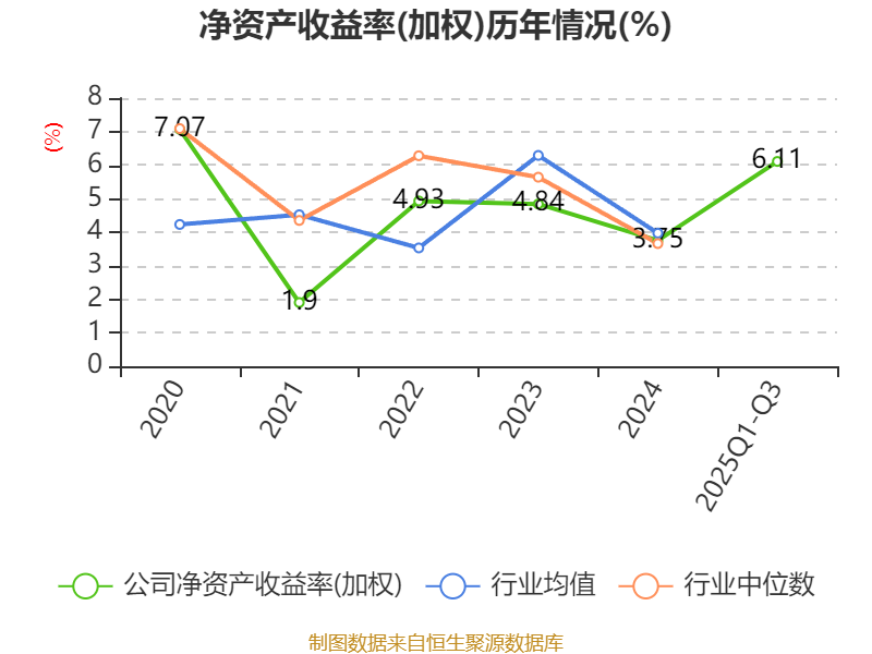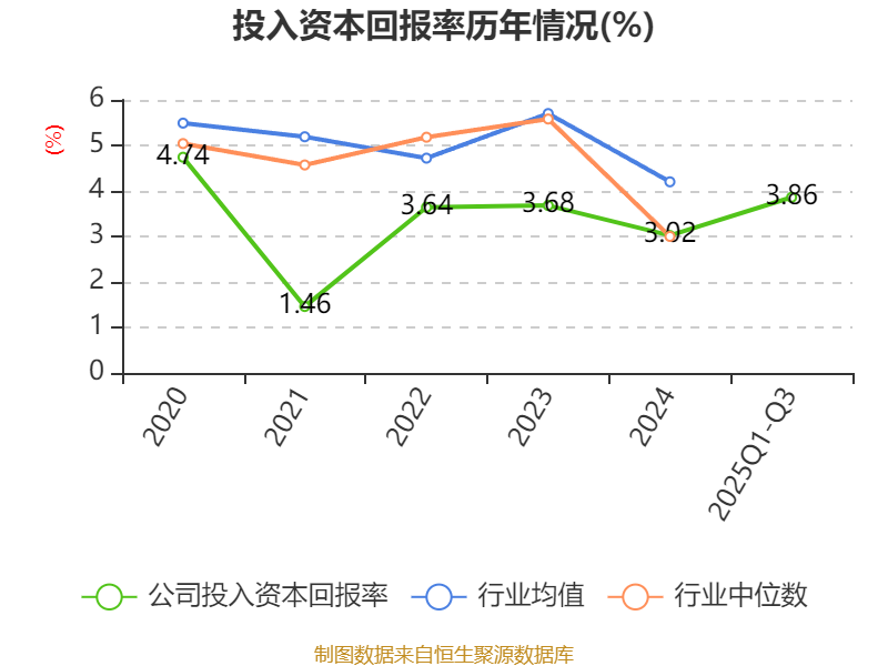 盈利能力方面, 2025年前三季度公司加权平均净资产收益率为6.11%,同比上升3.52个百分点。公司2025年前三季度投入资本回报率为3.86%,较上年同期上升1.78个百分点。