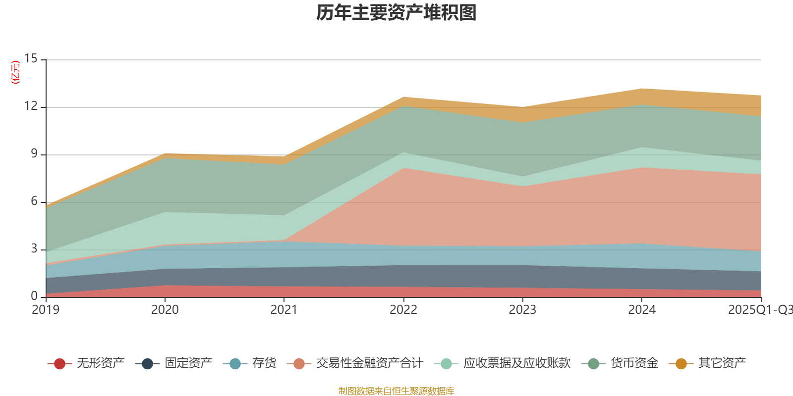 资产重大变化方面,截至2025年三季度末,公司应收票据及应收账款较上年末减少32.79%,占公司总资产比重下降2.95个百分点;存货较上年末减少20.5%,占公司总资产比重下降2.13个百分点;交易性金融资产合计较上年末增加1.66%,占公司总资产比重上升1.9个百分点;货币资金较上年末增加4.06%,占公司总资产比重上升1.58个百分点。