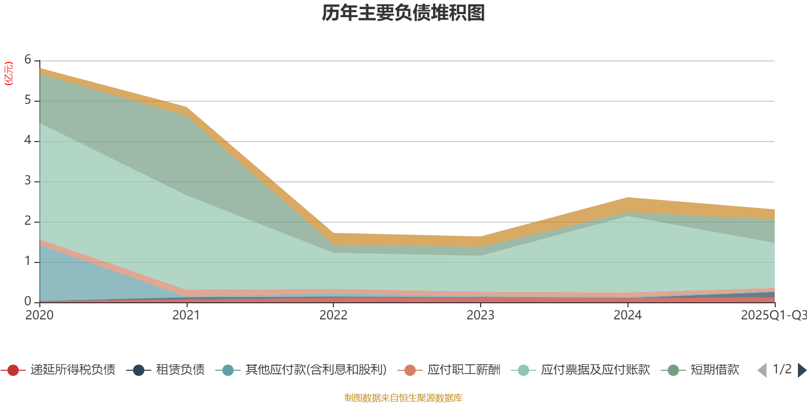 负债重大变化方面,截至2025年三季度末,公司应付票据及应付账款较上年末减少40.93%,占公司总资产比重下降5.59个百分点;短期借款较上年末增加481.41%,占公司总资产比重上升3.78个百分点;租赁负债占公司总资产的1.02%,上年末为0;其他流动负债较上年末减少51.71%,占公司总资产比重下降0.49个百分点。