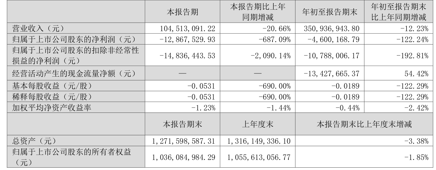 中证智能财讯三柏硕(001300)10月28日披露2025年第三季度报告。前三季度公司实现营业总收入3.51亿元,同比下降12.23%;归母净利润亏损460.02万元,上年同期盈利2068.06万元;扣非净利润亏损1078.8万元,上年同期盈利1162.33万元;经营活动产生的现金流量净额为-1342.77万元,上年同期为-2946.12万元;报告期内,三柏硕基本每股收益为-0.0189元,加权平均净资产收益率为-0.44%。