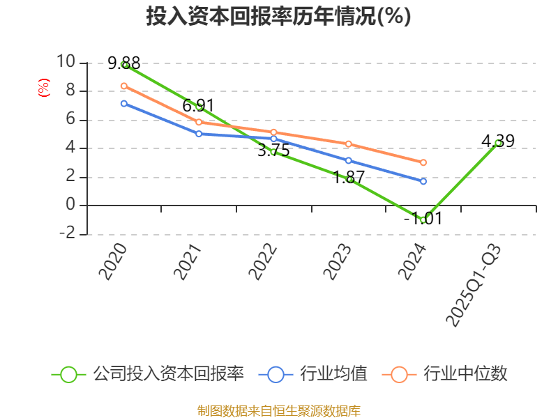 盈利能力方面, 2025年前三季度公司加权平均净资产收益率为4.76%,同比上升3.67个百分点。公司2025年前三季度投入资本回报率为4.39%,较上年同期上升3.43个百分点。