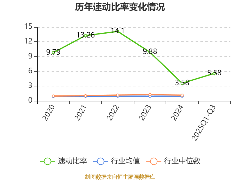 2025年前三季度,公司流动比率为6.56,速动比率为5.58。