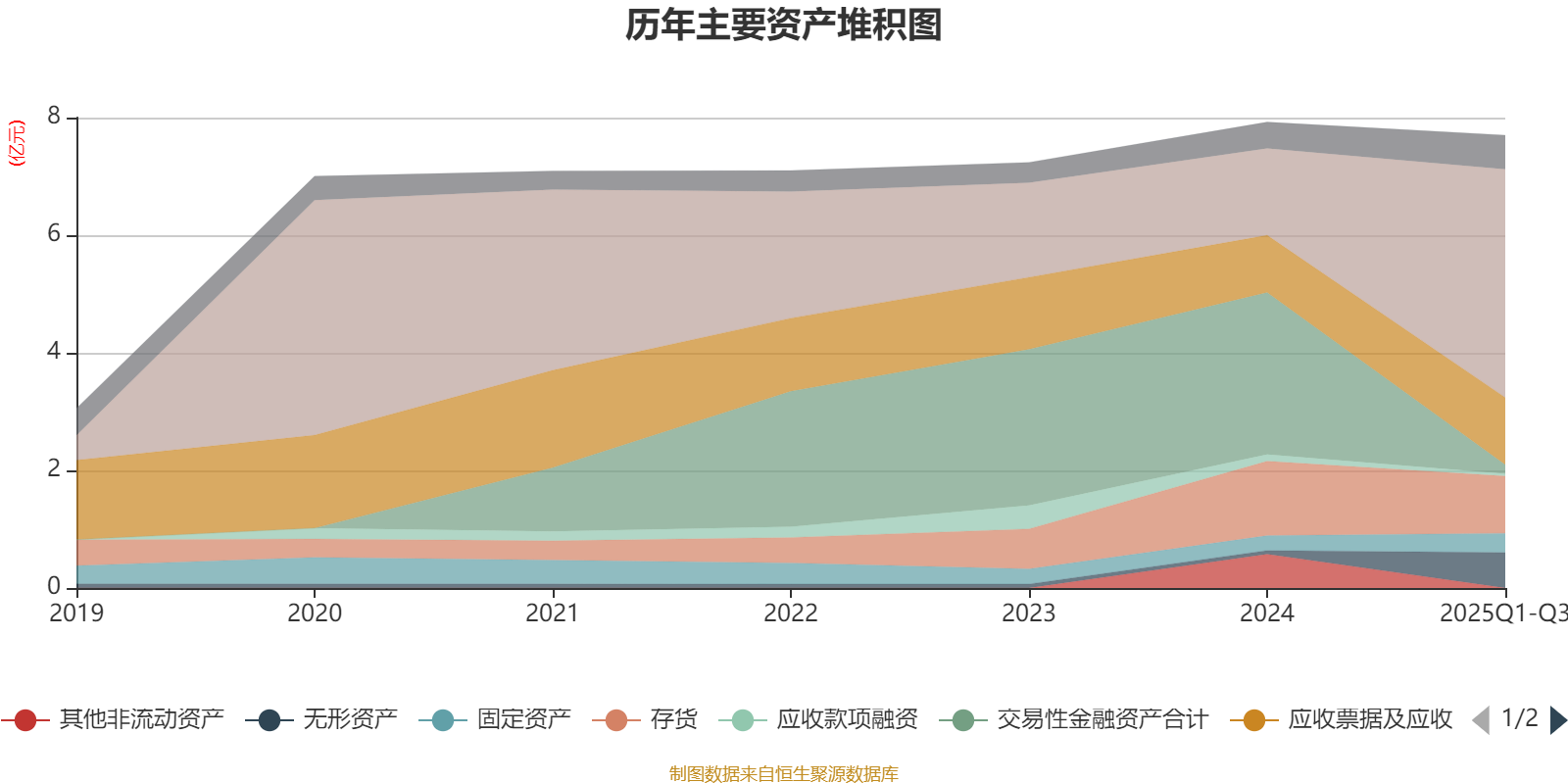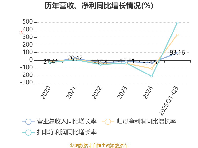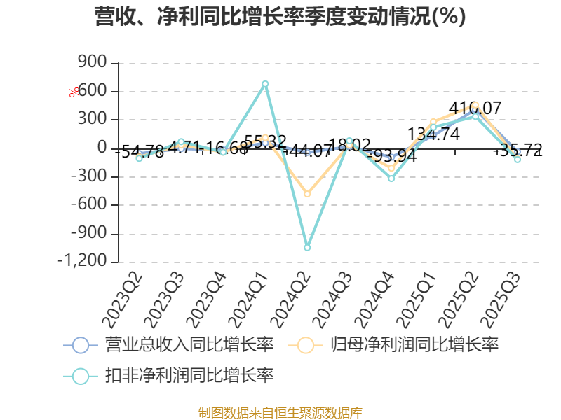 资产重大变化方面,截至2025年三季度末,公司交易性金融资产合计较上年末减少94.52%,占公司总资产比重下降32.77个百分点;货币资金较上年末增加162.42%,占公司总资产比重上升31.73个百分点;其他非流动资产较上年末减少100%,占公司总资产比重下降7.24个百分点;无形资产较上年末增加841.81%,占公司总资产比重上升7.03个百分点。