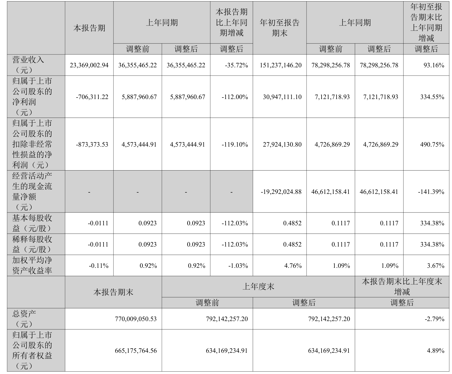 中证智能财讯 *ST凯鑫(300899)10月28日披露2025年第三季度报告。前三季度公司实现营业总收入1.51亿元,同比增长93.16%;归母净利润3094.71万元,同比增长334.55%;扣非净利润2792.41万元,同比增长490.75%;经营活动产生的现金流量净额为-1929.2万元,上年同期为4661.22万元;报告期内,*ST凯鑫基本每股收益为0.4852元,加权平均净资产收益率为4.76%。
