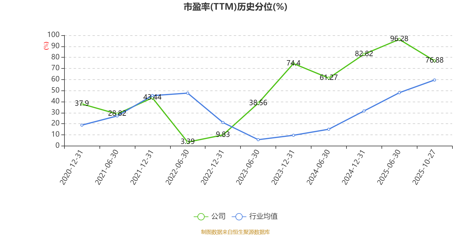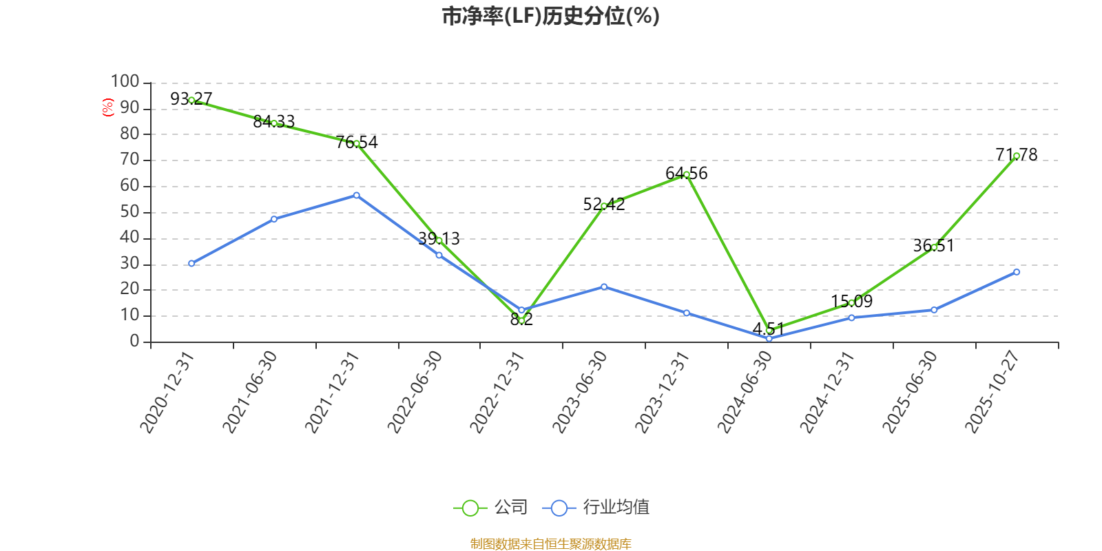 市盈率、市净率为负时,不显示当期分位数,会导致折线图中断。