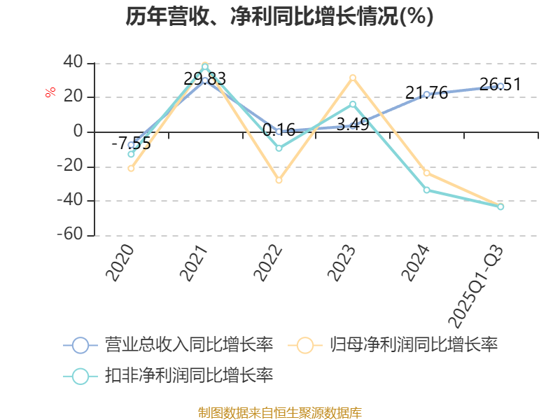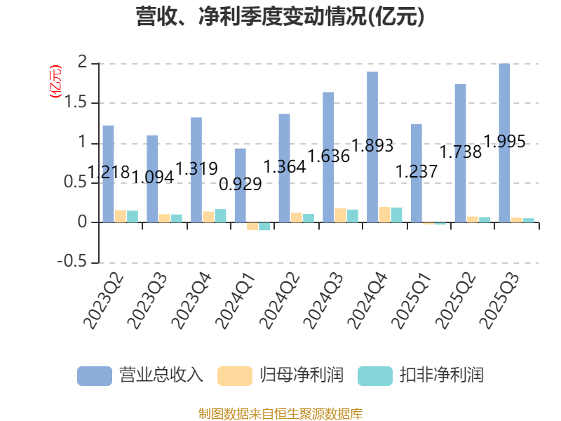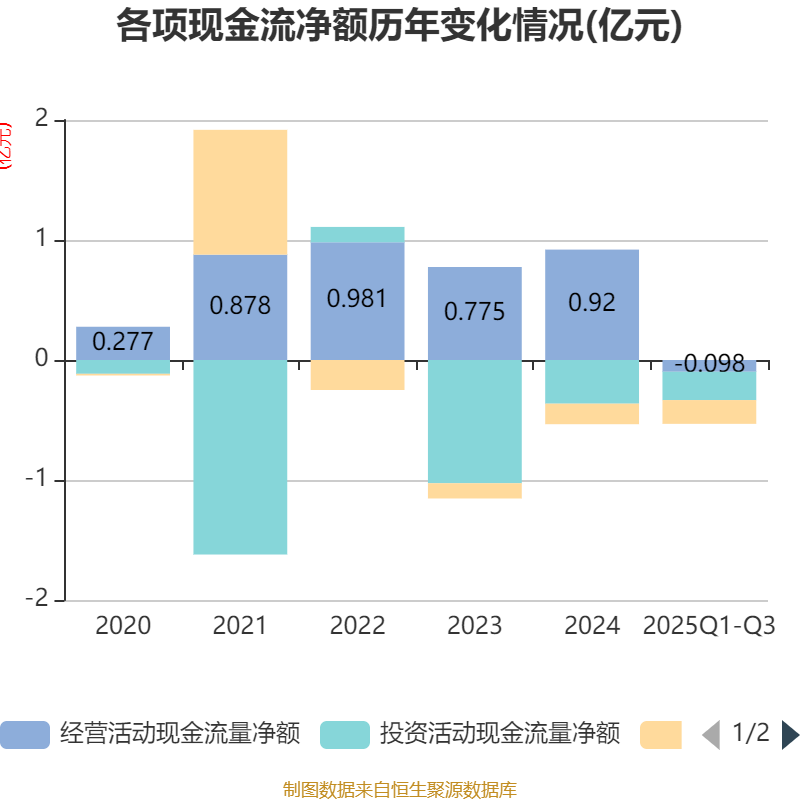 2025年前三季度,公司经营活动现金流净额为-975.22万元,同比增加933.14万元;筹资活动现金流净额-1979.45万元,同比减少314.39万元;投资活动现金流净额-2359.25万元,上年同期为4097.75万元。